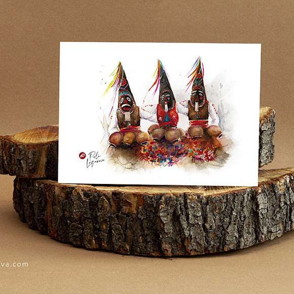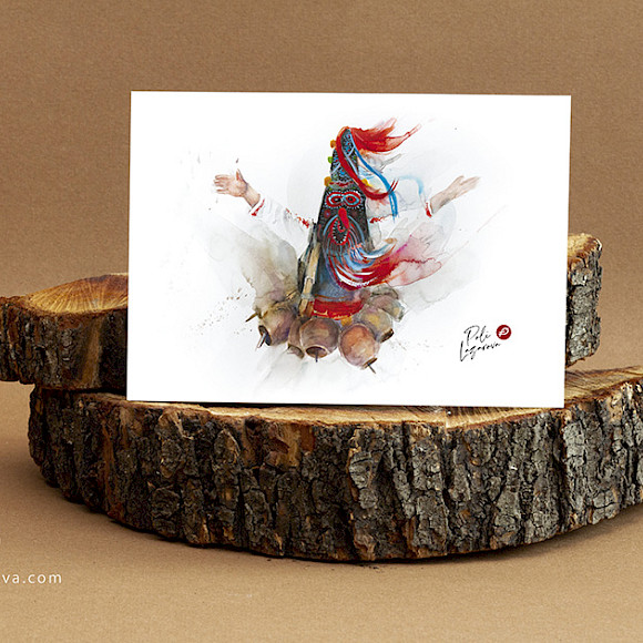Картичка Кукер II - принт на авторска акварелна картина. Акварелен картон 300 гр.