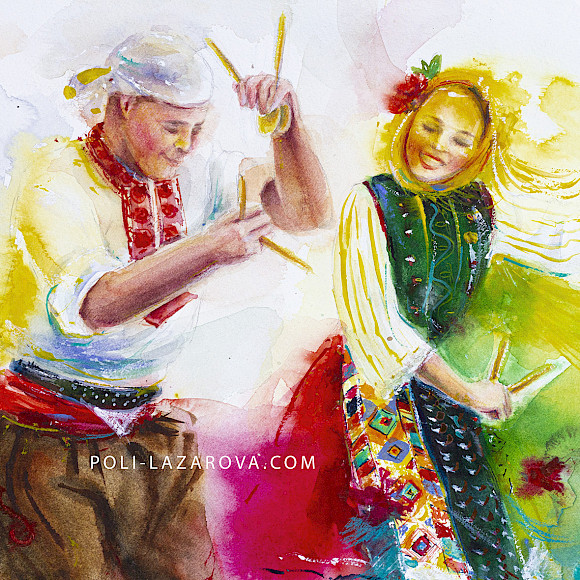 Картичка Обич - принт на авторска акварелна картина. Акварелен картон 300 гр.