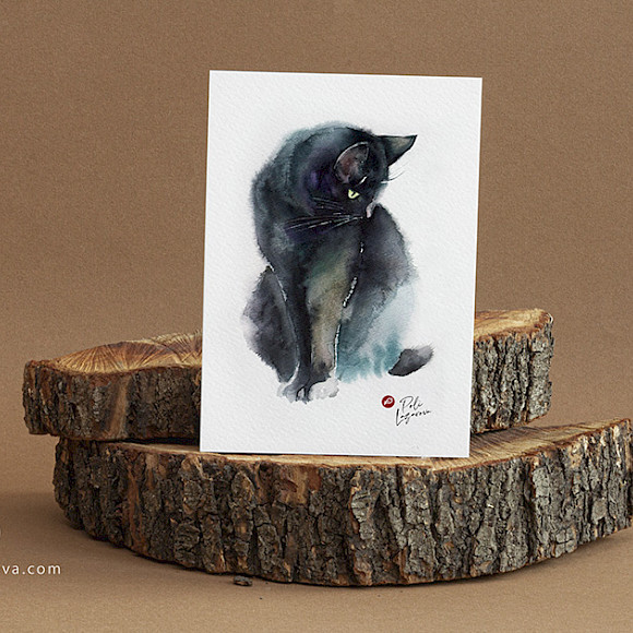 Картичка Котка - принт на авторска акварелна картина. Акварелен картон 300 гр.