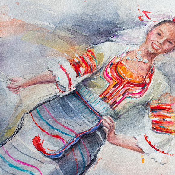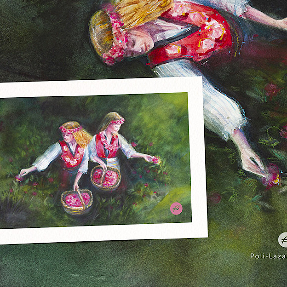 Картичка Момиче с коте - принт на авторска акварелна картина. Акварелен картон 300 гр.