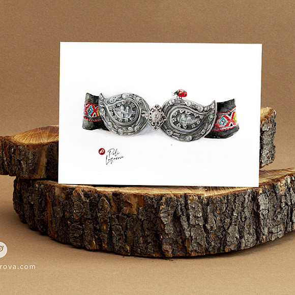 Елегантен фолклорен тефтер, вдъхновен от българските традиции! Компактен и стилен, истинско бижу, събира се в дамска чанта, за да е винаги с Вас! Подходящ за подарък на дами, обичащи фолклора и народните танци. Тефтер с принтирани авторски картини на фолклорна тема.